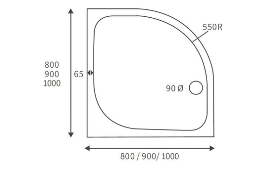 1000 x 800 Offset Quadrant Slimline Shower Tray LH